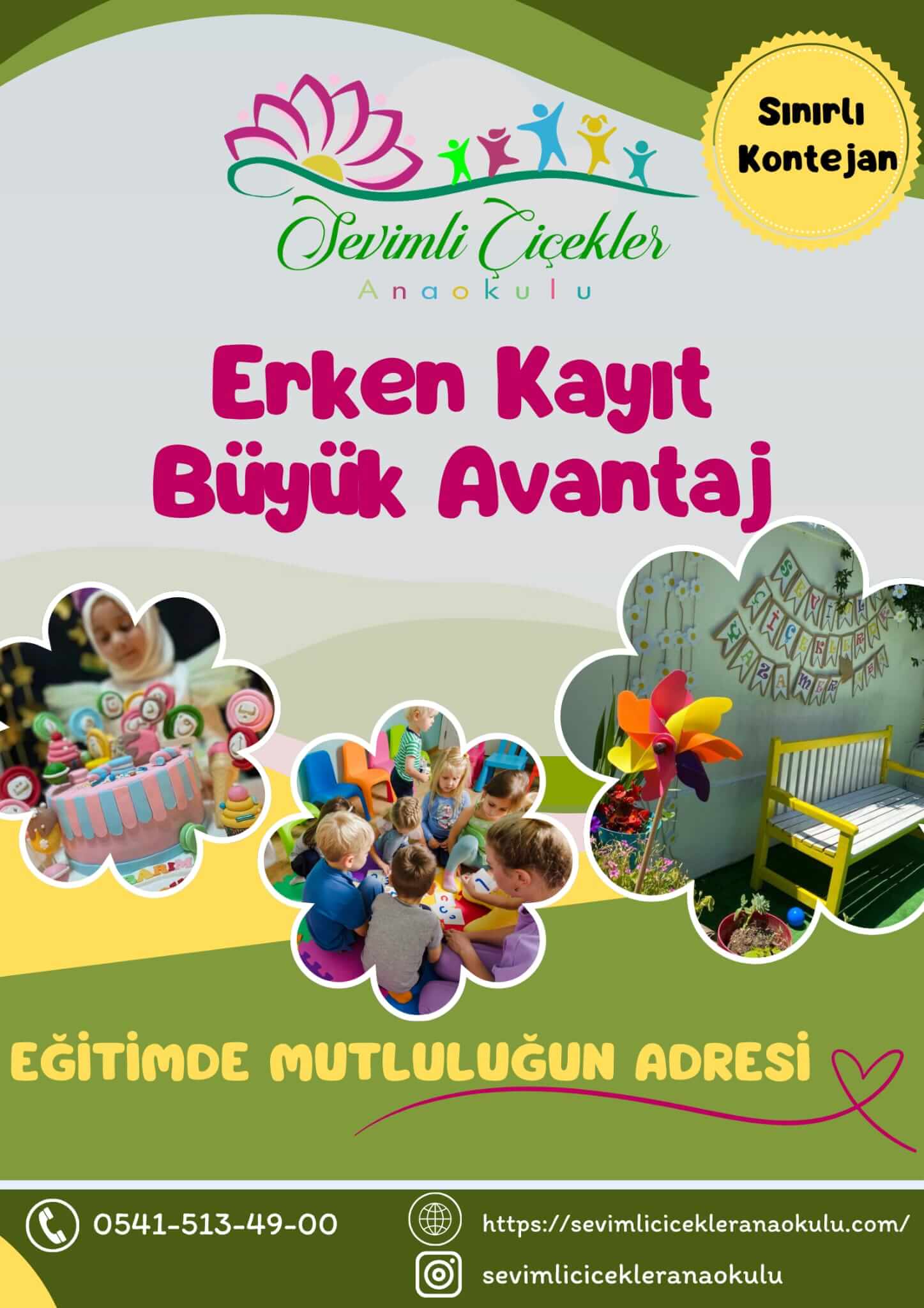 - Çocuklarınızın güvenle, sevgiyle ve değerlerle büyümesini istiyorsanız, Sevimli Çiçekler Anaokulu’na bekliyoruz! Gelin, birlikte güzel bir geleceğe adım atalım.